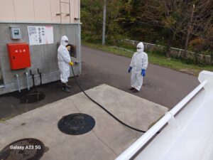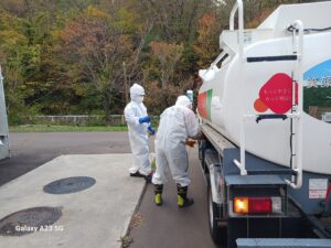 弊社所有タンクローリーにて燃料供給を行う訓練を担当させていただきました。